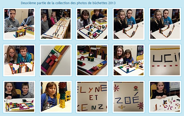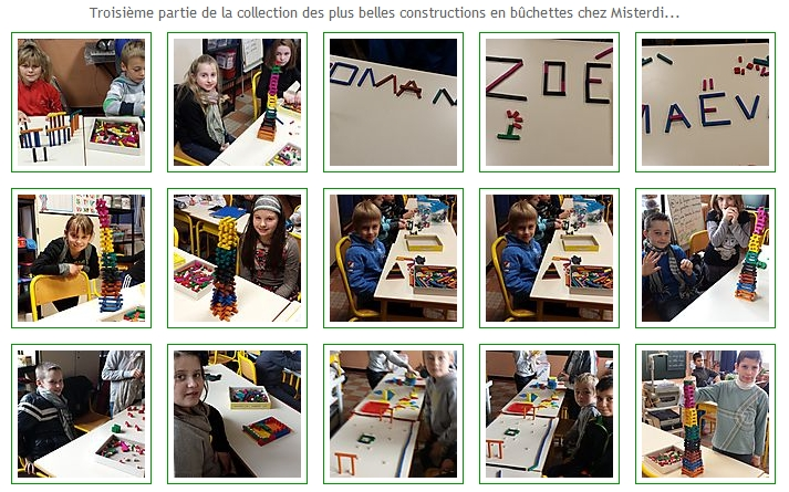 C'est la nouvelle activité à la mode : construire des gratte-ciels avec des bûchettes de bois coloré pendant les récrés et la cantine. C'est long, ce ,'est pas facile mais le résultat en vaut la peine..."Patience et longueur de temps font plus que force ni que rage..."