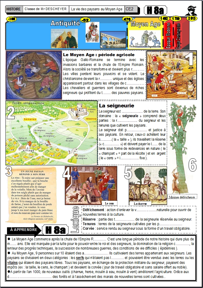 Pour mes collègues profs des écoles de France et d'ailleurs, je mets à disposition toutes mes fiches d'histoire. Elles sont destinées à être imprimées ( les fiches élèves ), à être projetées ( sur transparent avec rétro projecteur pour les fiches profs ). Ce sont des kits complets sous forme :